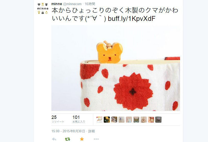 2015年08月31日 ミンネのTwitterで「木製クマしおり」を紹介して頂きました カテゴリ:minne(ミンネ) https://twitter.com/minnecom/status/638109069551759360木製クマしおり(ブックマーカー)https://minne.com/items/2394761 タグ :#動物#しおり 「minne(ミンネ)」カテゴリの最新記事 Creema(クリーマ)キュレーション「秋のキラキラアクセサリー」に「ビッグキューブ5Pネックレス」を紹介して頂きました。テトテ mail で「よせ木お殿さま しおり」を紹介して頂きました