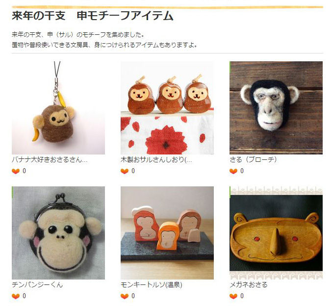2015年12月24日 ハンズ・ギャラリーマーケット「Collection」に「木製おサルさんしおり」を紹介して頂きました カテゴリ:ハンズギャラリーマーケット 来年の干支 申モチーフアイテムhttps://hands-gallery.com/木製おサルさんしおり(ブックマーカー)https://hands-gallery.com/shop/uriji/ タグ :#しおり 「ハンズギャラリーマーケット」カテゴリの最新記事 Creema(クリーマ)キュレーションに「寄木キューブイヤリング縞」を紹介して頂きました。minne「注目の作品をピックアップ」で「木製おサルさんしおり(ブックマーカー)」を紹介して頂きました