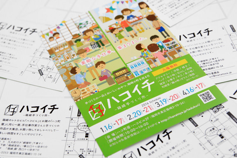 2016年01月04日 ハコイチ(箱崎手づくり市)1月の出展場所が決まりました カテゴリ:イベント ハコイチ(箱崎手づくり市)http://hanatoya.jp/tedukuri/index.html2016年1月16(土)~17(日)10時~16時出展場所:ハコ町屋 <<町-5>>http://hanatoya.jp/tedukuri/list58.html〒812-0053 福岡市東区箱崎2丁目10-34http://hanatoya.jp/tedukuri/info.html出展場所:ハコ町屋 <<町-5>>http://hanatoya.jp/tedukuri/list58.htmlハコ町屋の2階になります。今年最初のイベントです。どうぞよろしくお願いいたします。 タグ :#ハコイチ 「イベント」カテゴリの最新記事 木製カメラしおり(ブックマーカー)Creema「成人式の花かざり」に「木製帯留め 市松寄木 小鳥」を紹介して頂きました
