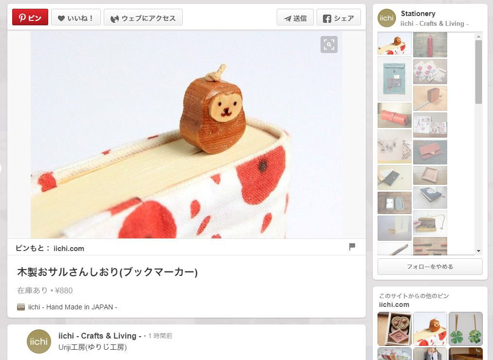 2015年12月28日 iichi「Pinterest」で「木製おサルさんしおり(ブックマーカー)」を紹介して頂きました カテゴリ:iichi(イイチ) iichi「Pinterest」https://jp.pinterest.com/pin/112097478203135301/ タグ :#動物#しおり 「iichi(イイチ)」カテゴリの最新記事 木製カメラのペンダント木製カメラしおり(ブックマーカー)