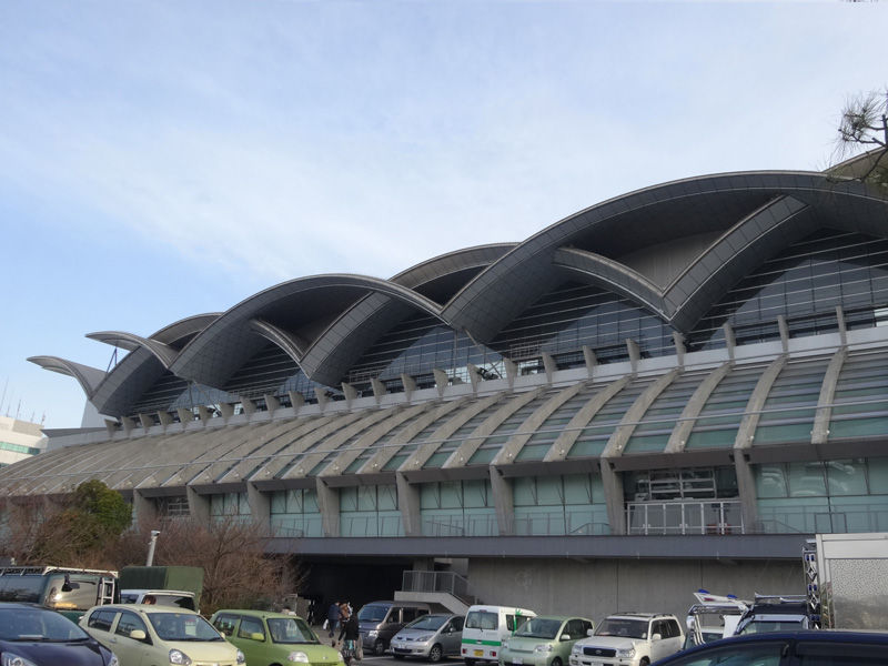 マリンメッセのすぐ横は海なので、カモメをイメージしたというデザインの建築物です。