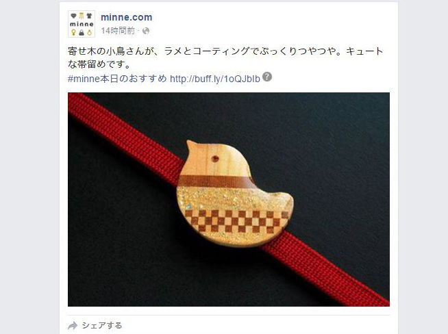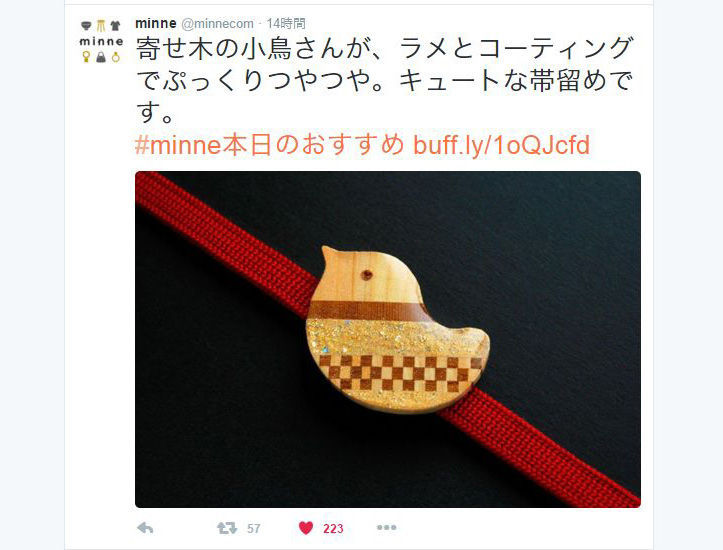 2016年03月04日 minne本日のおすすめ「facebook」「Twitter」で「木製帯留め 市松寄木 小鳥」を紹介して頂きました カテゴリ:minne(ミンネ) facebookhttps://www.facebook.com/minnecom/Twitterhttps://twitter.com/minnecom/木製帯留め 市松寄木 小鳥https://minne.com/items/930807 タグ :#鳥#帯留め 「minne(ミンネ)」カテゴリの最新記事 木のエビフライしおり(ブックマーカー)「宗像 てくてく。vol.12」のUriji工房の場所です