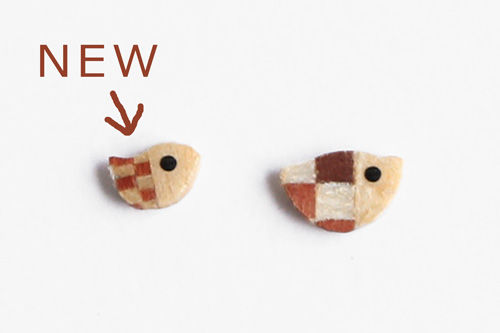 2016年04月02日 ミニチュア市松小鳥の寄木を小さくしました カテゴリ:工房 カメラブローチのレンズの中に入っているのが寄木市松小鳥です。前回の試作と比べると、こんな感じです。市松寄木の大きさを細かくしました。寄木の幅は約0.5mmです。 大きさはこれぐらいです。 近日発売予定です。 タグ :#ミニチュア 「工房」カテゴリの最新記事 「minneマルシェ in 門司港グランマーケット2016春」 の出展場所が決まりましたCreema「今週注目の新作40選」に「木製ティアドロップゆれるピアス 薄ピンク」を紹介して頂きました。