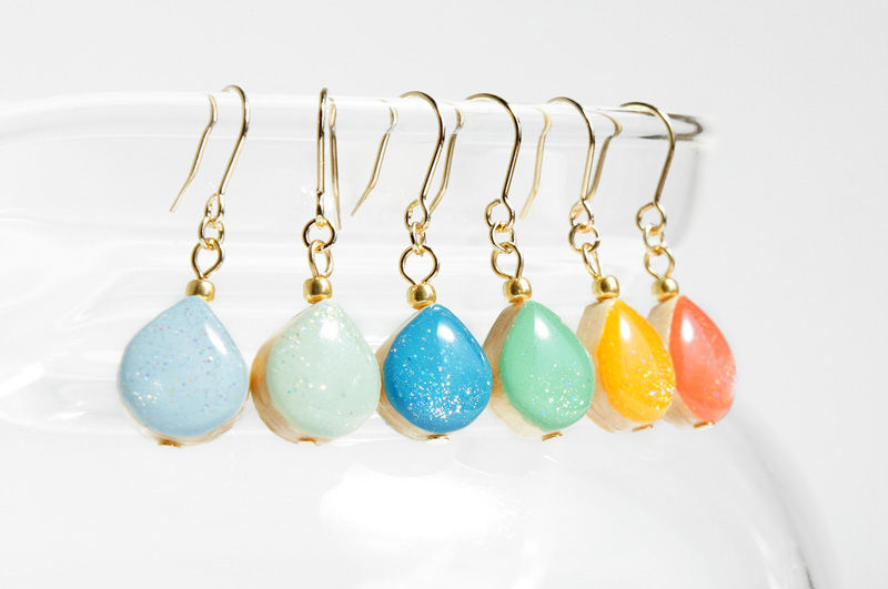 木製ティアドロップゆれるピアス GR01