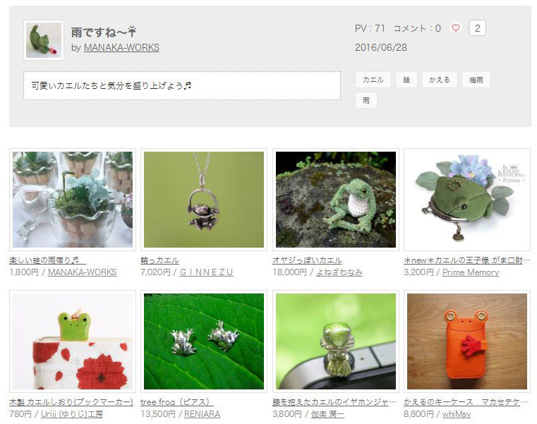2016年06月29日 Creema(クリーマ)キュレーションに「木製 カエルしおり(ブックマーカー)」を紹介して頂きました。 カテゴリ:Creema(クリーマ) 雨ですね〜http://www.creema.jp/curations/detail/id/9293木製 カエルしおり(ブックマーカー)http://www.creema.jp/exhibits/show/id/1035979 タグ :#しおり 「Creema(クリーマ)」カテゴリの最新記事 寄木キューブ(縞)ピアス ・イヤリング木製ひよこイヤリング