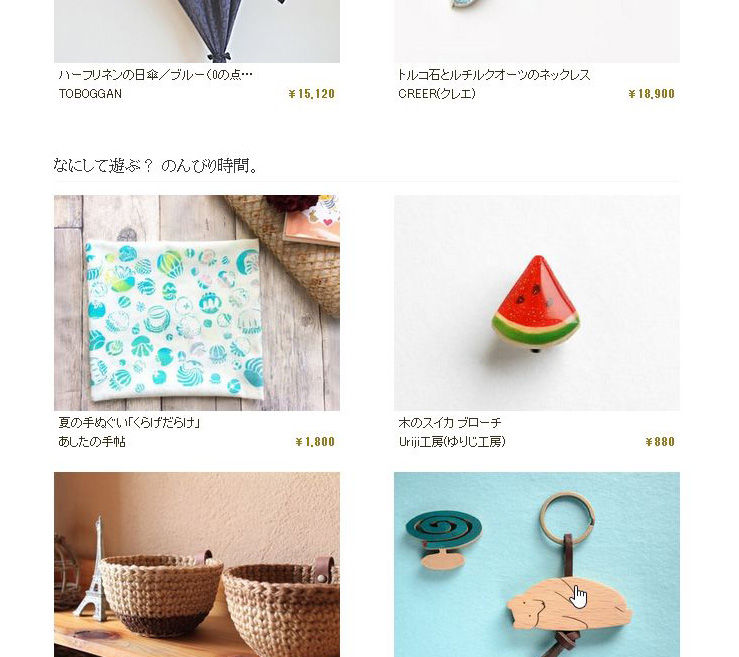 2016年07月12日 iichiのメールマガジン[iichi通信]夏の必需品。に「スイカブローチ」を紹介して頂きました カテゴリ:iichi(イイチ) [iichi通信]夏の必需品https://www.iichi.com/newsletter/20160712スイカブローチ https://www.iichi.com/listing/item/912925 タグ :#ブローチ 「iichi(イイチ)」カテゴリの最新記事 iichi(イイチ)トップページ「今週のピックアップ」に「木のスイカブローチ」を紹介して頂きましたminne「Twitter」で「木製カメラしおり」を紹介して頂きました