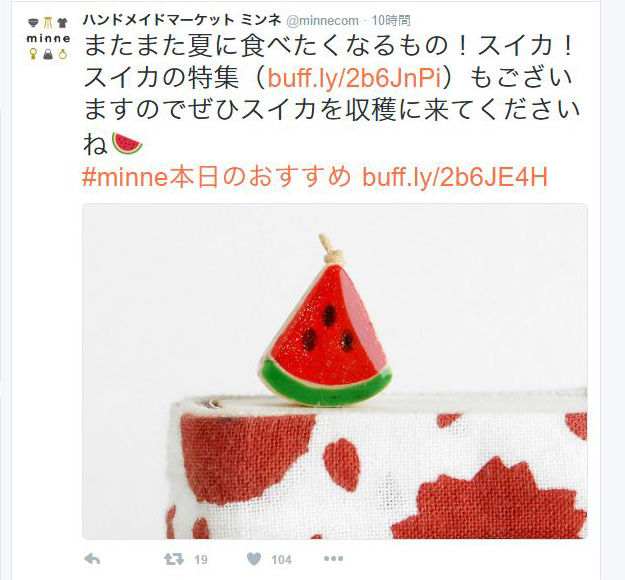 2016年08月09日 minne「Twitter(本日のおすすめ)」で「木製スイカしおり(ブックマーカー)」を紹介して頂きました カテゴリ:minne(ミンネ) minne「Twitter(本日のおすすめ)」https://twitter.com/minnecom/status/763012230933872640「木製スイカしおり(ブックマーカー)」https://minne.com/items/5396877 タグ :#しおり 「minne(ミンネ)」カテゴリの最新記事 Creemaメルマガ「輝く星々を閉じ込めたような作品」に「木製スクエア3粒ブレスレットS 星空系」を紹介して頂きました木のチョコケーキしおり(ブックマーカー)