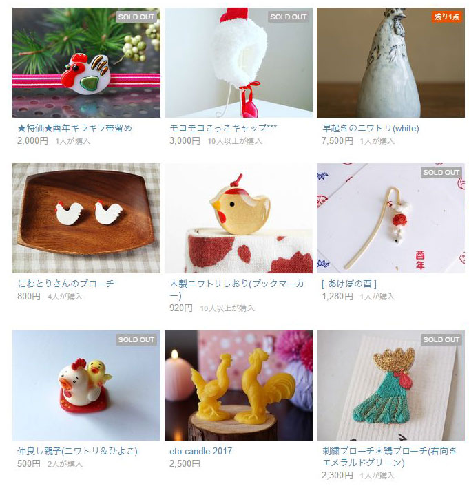 2016年12月24日 minne(ミンネ)特集「酉年の干支雑貨」に「 木製ニワトリしおり」を紹介して頂きました カテゴリ:minne(ミンネ) 「酉年の干支雑貨」https://minne.com/curations/207「 木製ニワトリしおり」https://minne.com/items/7015738 タグ :#しおり 「minne(ミンネ)」カテゴリの最新記事 minne(mag)セレクション「お正月を何倍も楽しくする「酉(とり)」グッズ」に「 木製ニワトリしおり」を紹介して頂きましたCreema特集「新春限定 2017福袋セット」に「木製ニワトリとヒヨコの根付&しおり福袋セット」を紹介して頂きました
