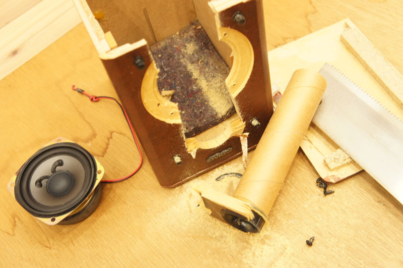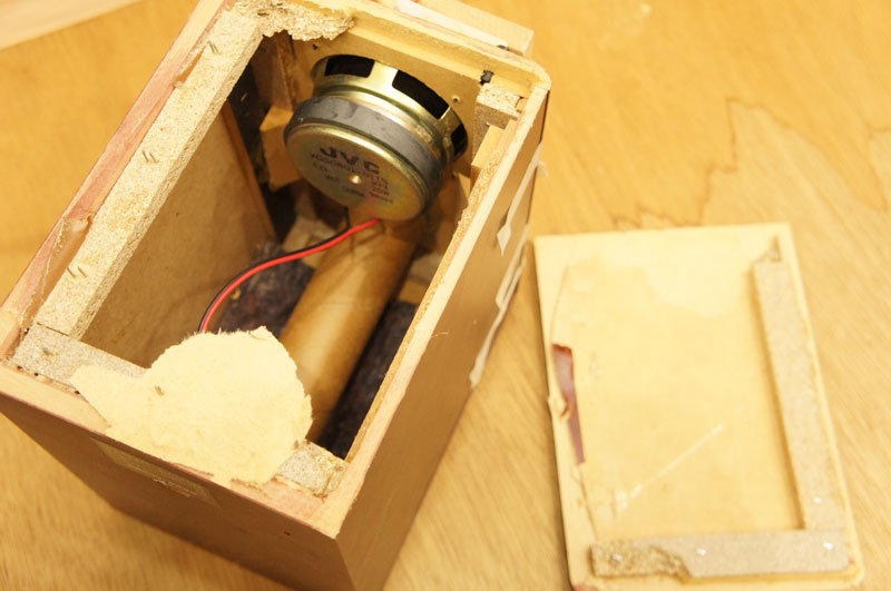 低音を強調するトイレットペーパーの芯のような筒は、
