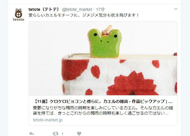 2017年05月19日 tetote(テトテ)Twitter「ケロケロピョコンと傍らに、カエルの雑貨」に「木製 カエルしおり(ブックマーカー)」を紹介して頂きました カテゴリ:tetote(テトテ) 「ケロケロピョコンと傍らに、カエルの雑貨」https://tetote-market.jp/note/5095「木製 カエルしおり(ブックマーカー)」https://tetote-market.jp/creator/Uriji/pi2126980357/ 「tetote(テトテ)」カテゴリの最新記事 工房改装:スピーカーを作り直しました工房改装:看板がつきました