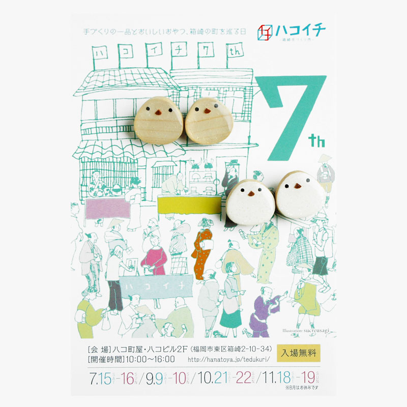2017年07月13日 ハコイチ(箱崎手づくり市)7月のUriji工房(ゆりじ工房)の出展場所です カテゴリ:イベント ハコイチ(箱崎手づくり市)http://hanatoya.jp/tedukuri/index.html2017年7月16日(日)10時~16時出展場所:ハコ町屋 <<町-21>>http://hanatoya.jp/tedukuri/list74.html〒812-0053 福岡市東区箱崎2丁目10-34http://hanatoya.jp/tedukuri/info.htmlハコ町屋の2階になります。どうぞよろしくお願いします。 「イベント」カテゴリの最新記事 Creema特集「おすすめの新作」に「木のシマエナガしおり 白(ブックマーカー)」を紹介して頂きました工房改装:オープンは7月21日(金)です
