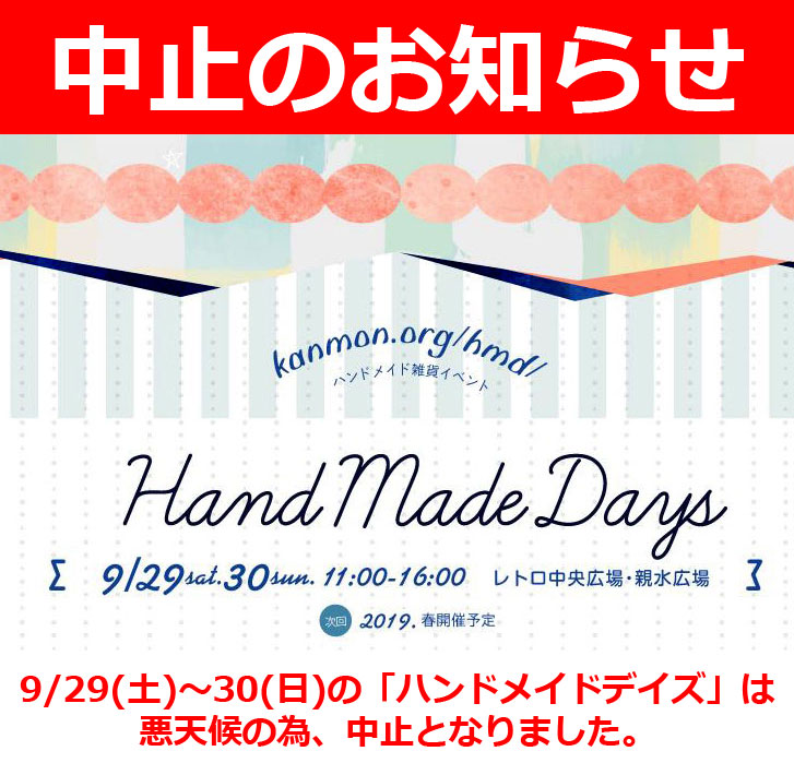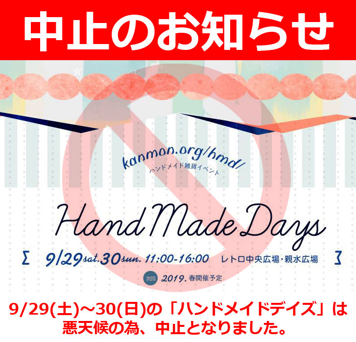 2018年09月24日 「ハンドメイドデイズ」は中止となりました。 カテゴリ:イベント -ハンドメイドデイズ中止のお知らせ-http://kanmon.org/hmd/2018/09/27/discontinuation/ハンドメイドデイズ4 門司港レトロ2018年9月29日(土)~30日(日)11時~16時門司港レトロ中央広場・親水広場出展場所:B31http://kanmon.org/hmd/http://kanmon.org/hmd/2018/08/30/m40/ 「イベント」カテゴリの最新記事 minne(ミンネ)特集「大人のきらめきアイテム」に「星空キューブとコットンパールのブレスレット」を紹介して頂きました10月のURIJI工房の営業日です
