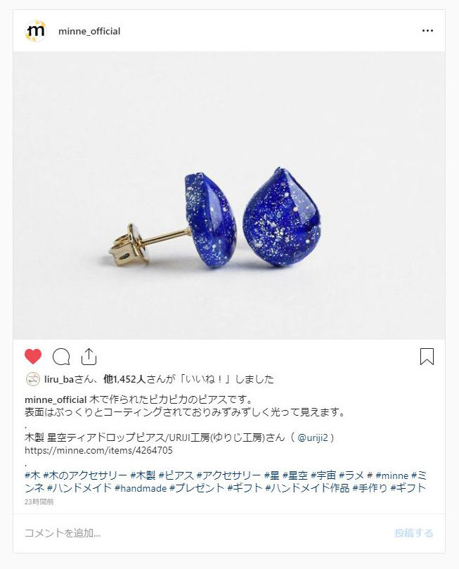 2019年10月20日 minne「Instagram」に「木製 星空ティアドロップピアス」を紹介して頂きました カテゴリ:minne(ミンネ) minne「Instagram」https://www.instagram.com/p/B31tfAjnLEv/ 「木製 星空ティアドロップピアス」https://minne.com/items/4264705 「minne(ミンネ)」カテゴリの最新記事 10月はイベント出展・準備の為、実店舗の営業はお休み致します。「糸島ハンドメイドカーニバル2019秋」に出展します