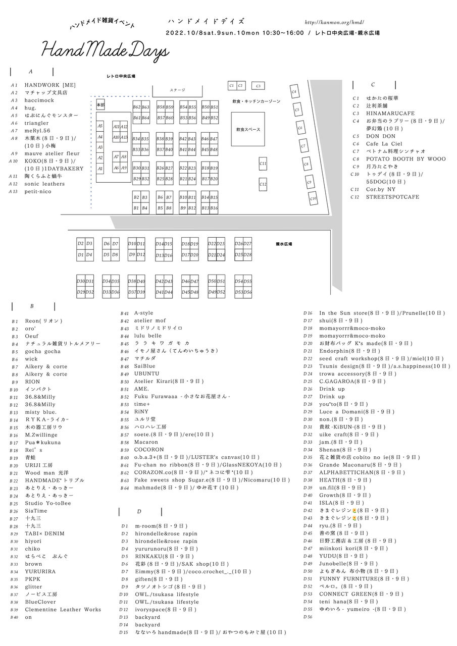 2022年09月29日 「ハンドメイドデイズ門司港」(2022年10月)に出展いたします カテゴリ:イベント 「ハンドメイドデイズ」福岡県北九州市門司港レトロ2022年10月8日(土)・9日(日)・10日(月祝)時間:10:30〜16:00※雨天決行(荒天の場合は中止)レトロ中央広場・親水広場出展場所:B-20http://kanmon.org/hmd/出店者一覧http://kanmon.org/hmd/exhibitors/ 「イベント」カテゴリの最新記事 博多阪急『ユトリエ』ちいさいもの展 2022 に出展いたしますiichiのメールマガジン[iichi通信]新しい文具に、わくわく。に「木製シマエナガしおり RT」を紹介して頂きました