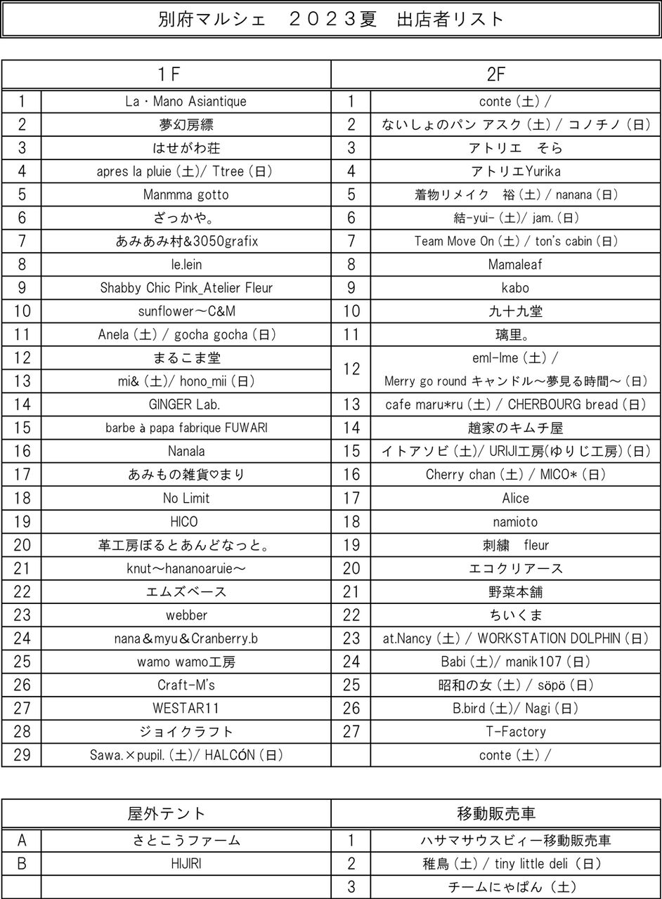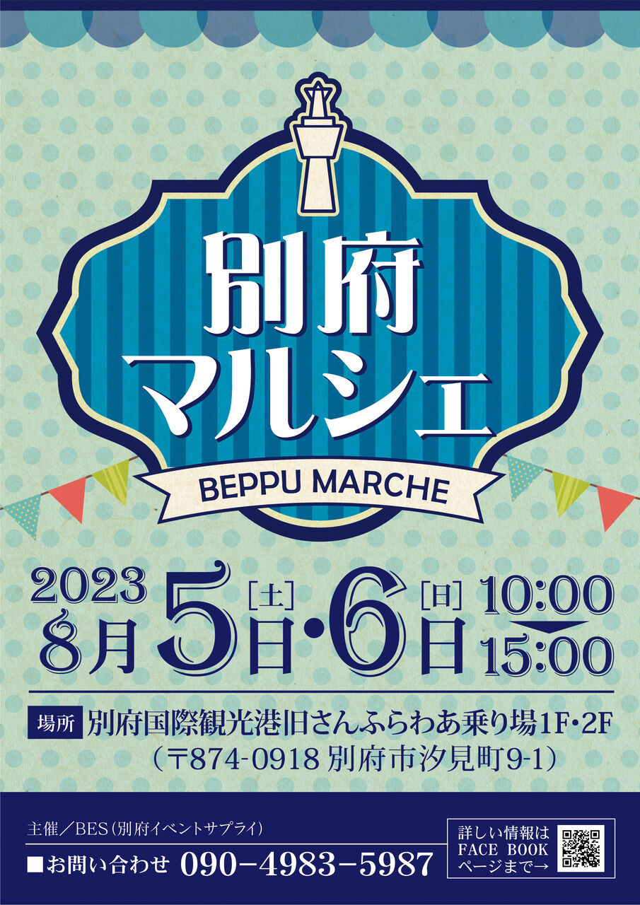 2023年07月25日 「別府マルシェ」に出展いたします カテゴリ:イベント ゆりじ工房は6日のみ出展します。■会場:別府国際観光港旧さんふらわ乗り場1F2F大分県別府市汐見町9-1■開催日:2023年8月5日(土)6日(日)←ゆりじ工房は6日のみ出展■時間:10:00―15:00■出展場所:2階 (15番)どうぞよろしくお願いします。 「イベント」カテゴリの最新記事 「第4回 きたきゅうフェスティバル」に出展いたします小倉ロフトに期間限定で出展いたします。